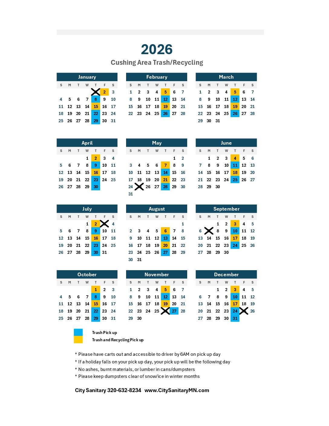 Please Note: If your pickup falls on a Holiday, we will pick up the day after the holiday. Please leave your cart out until it’s been picked up.
